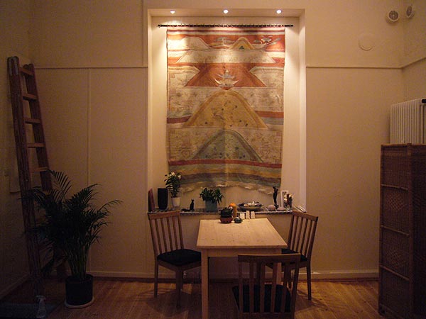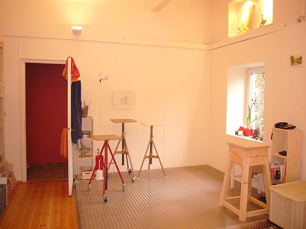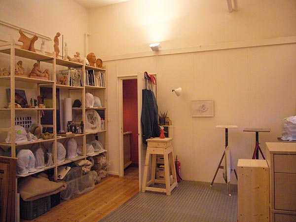 Als ich die fast vier Meter hohen Räume zum ersten Mal betrat, war mir klar: Hier will ich arbeiten! Die Raumhöhe ist ebenso wie das Metallpodest, bei dem man sich keine Gedanken machen muss, wenn einmal etwas zu Boden fällt, ideal für plastisches Arbeiten. Eine ganze Anzahl von Nischen schienen wie dafür geschaffen, durch Plastiken belebt zu werden, und in eine große Nische passte genau der Lieblingsteppich meiner Großmutter, die ihn nach Jahrzehnten, die sie in China verbracht hatte, mit nach Norwegen nahm.
